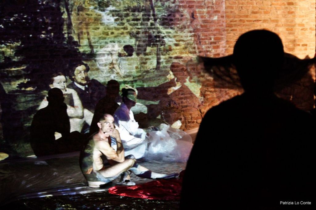 Il grande proscenio naturale del bosco parigino ritratto dal pittore, anticipazione di quell’esprit nouveau che di lì a poco avrebbe metaforicamente travalicato le alte mura dell’hortus concluso come energica e rigogliosa contaminazione culturale, verrà proiettato sulla parete rimasta bianca e spoglia; gli attori daranno vita ad azioni indipendenti nella mise-en-scène ideata dagli artisti che altera i ruoli dei protagonisti del quadro ma non sminuisce – casomai amplifica – la frivola spontaneità del momento e la percezione di presenziare, nel giusto luogo e nel giusto tempo, alla più significativa rivoluzione figurativa, culturale e sociale che il linguaggio artistico, finalmente liberato dalle imposizioni schematiche della verosimiglianza, abbia mai potuto testimoniare.